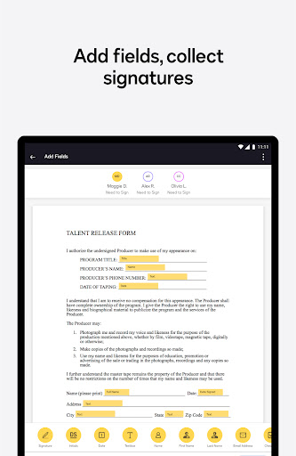 • Access to essential fields. Request signature, date, and name.